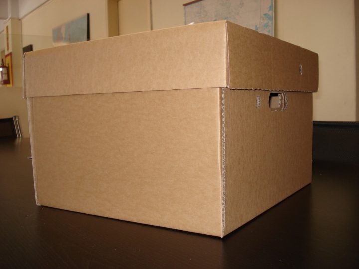 Caja Corrugado Archivo Box Oficinista con tapa separada, ojal para precinto y manija incorporada.